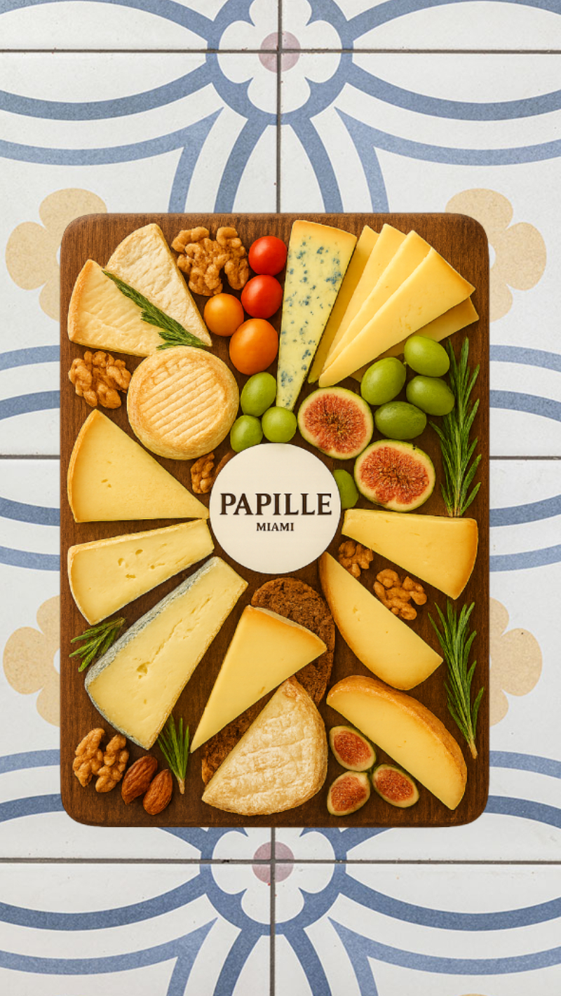 Papille is dedicated exclusively to the art of French cheese. Before composition, before presentation, before service — we begin with the product itself. Each platter is built around carefully selected cheeses, chosen for their origin, maturity, and character. Seasonal fruits and simple accompaniments are added only to support balance and flavor — never to distract. Our work favors restraint, precision, and respect for ingredients.